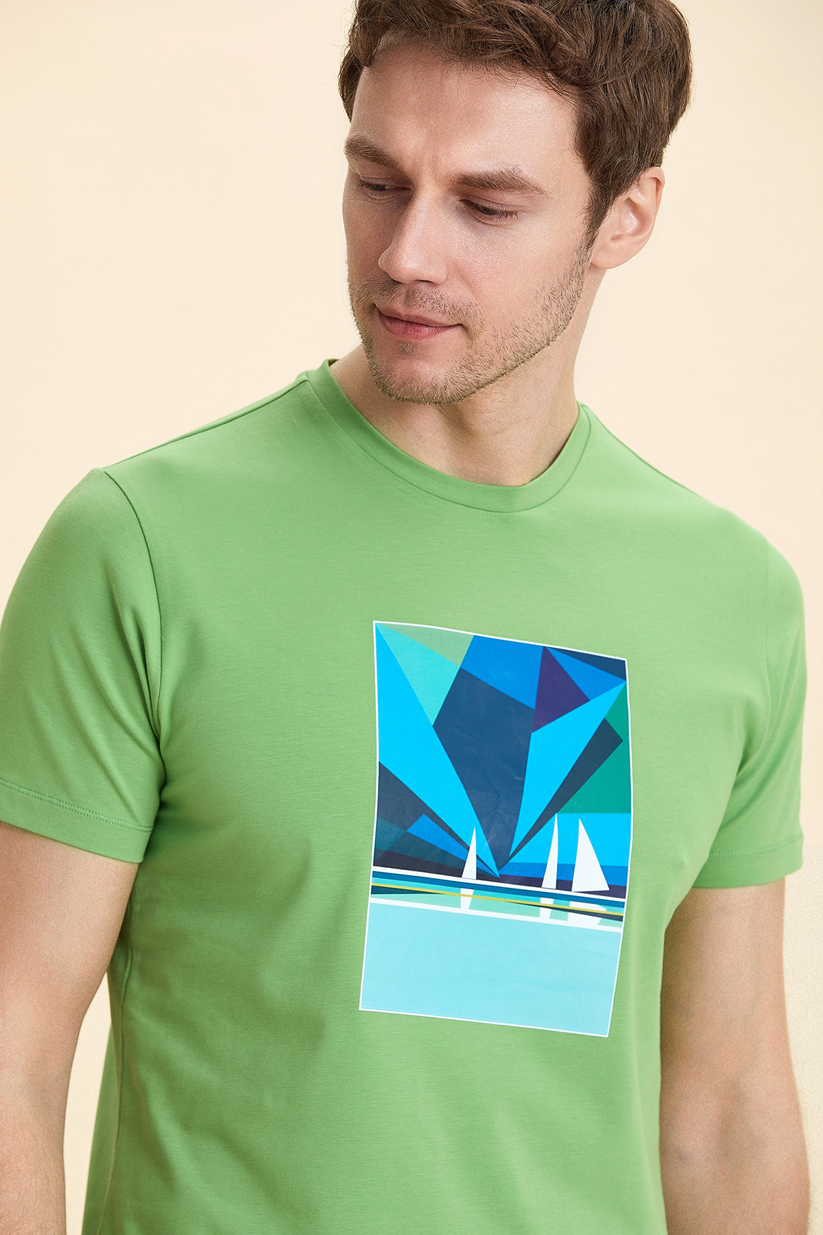 Barrington Yeşil Pamuklu Marin Baskılı Tişört