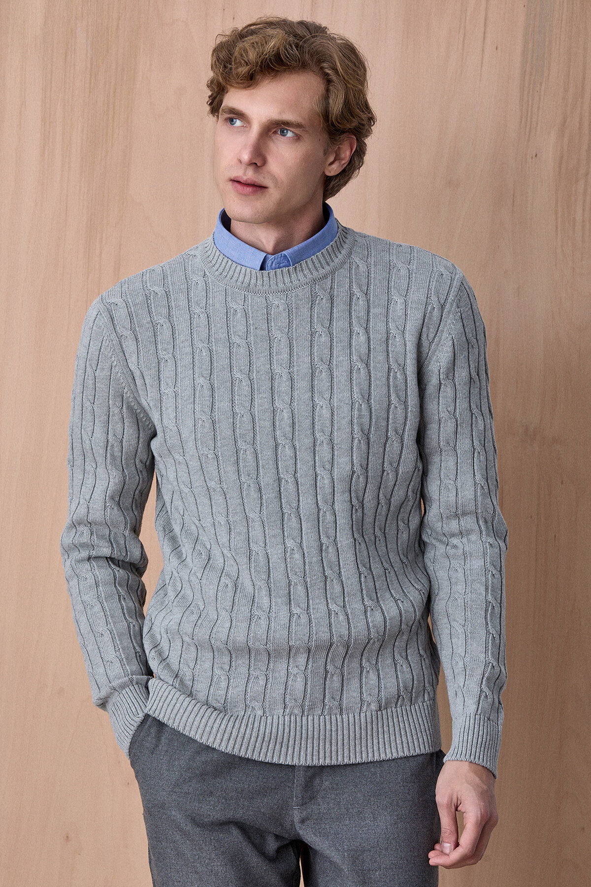 Dario Gri %100 Pamuk Saç Örgü Bisiklet Yaka Triko
