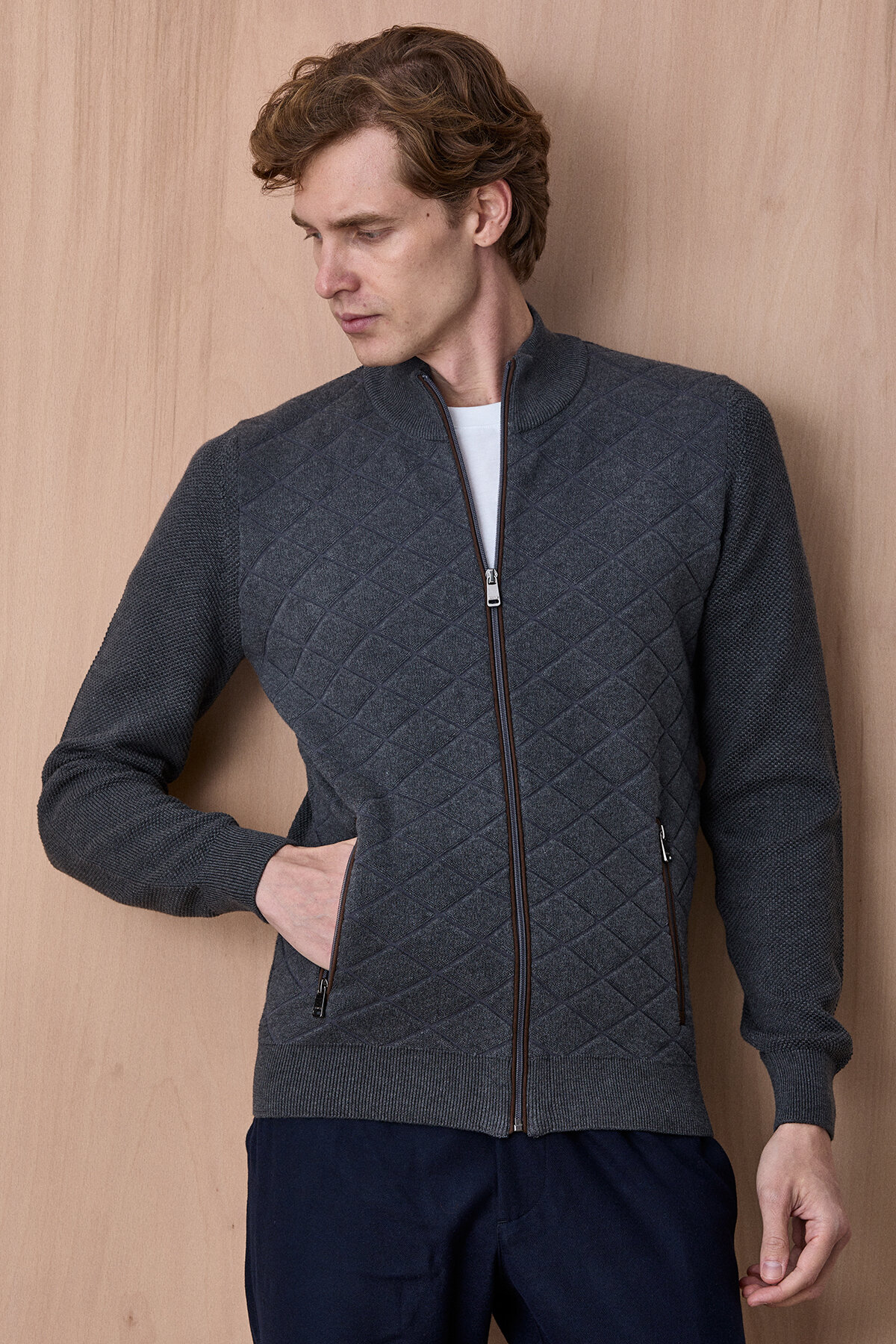 Knit Pamuklu Fermuarlı Antrasit Triko