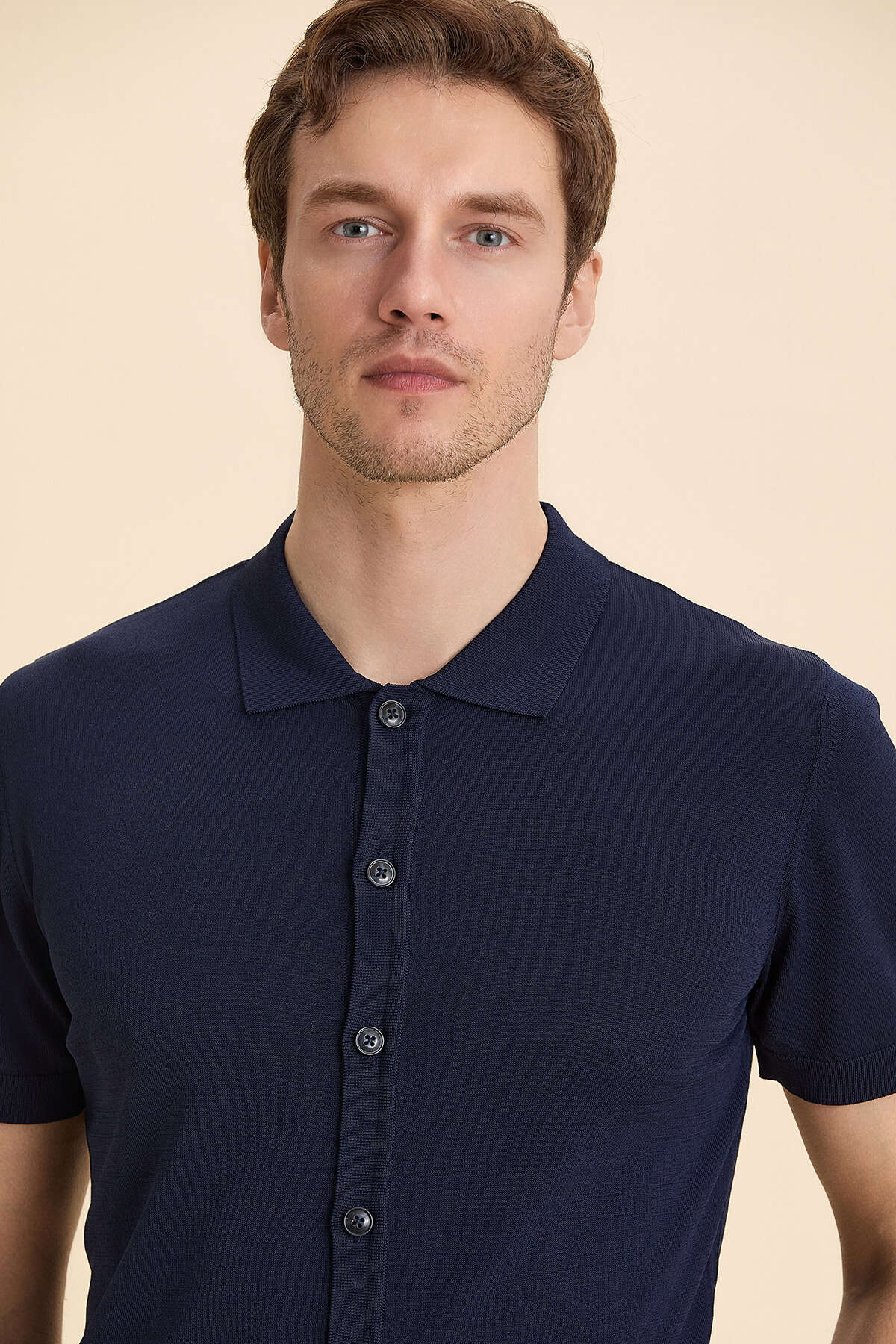 Sade çizgiler, güçlü duruşlar yaratır. Bu lacivert düğmeli polo triko gömlek, minimal tasarım anlayışını, klasik gömlek havası veren düğmeli formuyla harmanlıyor. Hafif ve serin dokunuşlu kumaşı sayesinde sıcak havalarda konfor sunarken, ince yapısı sayesinde katmanlı kombinler için de ideal bir seçenek oluşturur.