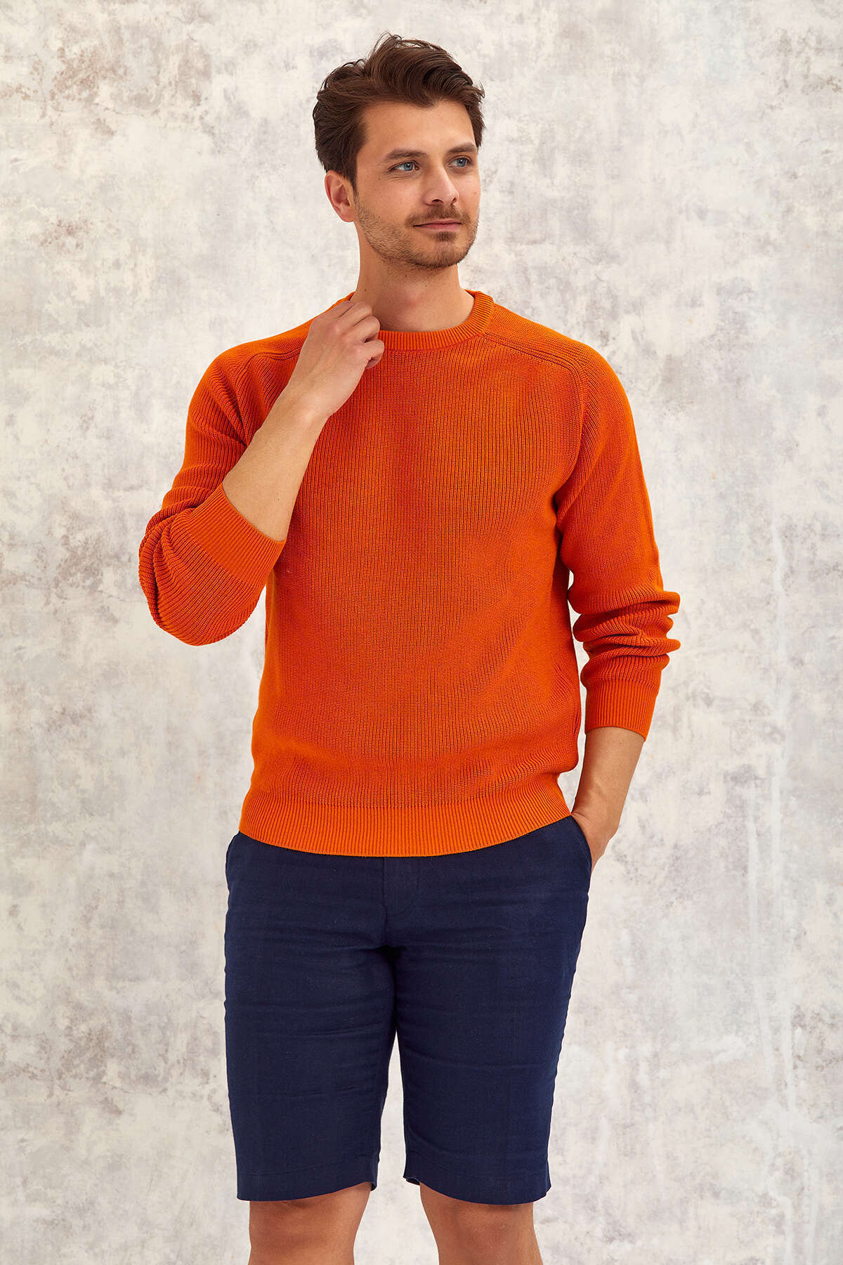 Saint Turuncu %100 Pamuk Yuvarlak Yaka Triko Kazak